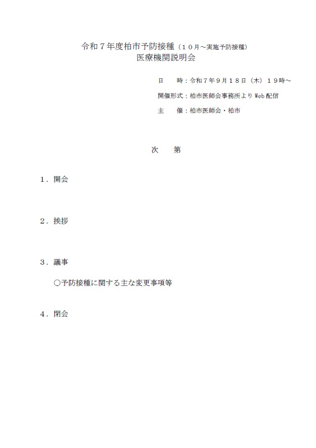 令和7年度柏市新型コロナウイルス感染症、小児及び高齢者インフルエンザ予防接種に係る医療機関向け説明会(9/18(木)19:00~)